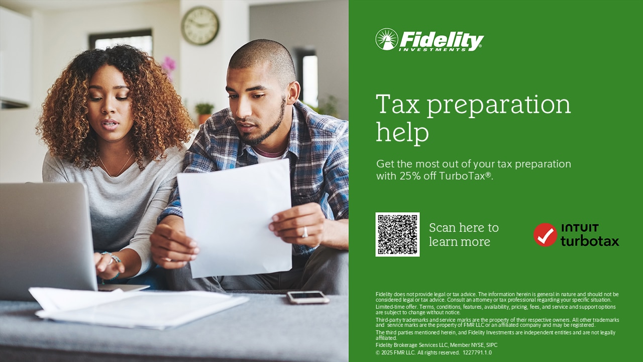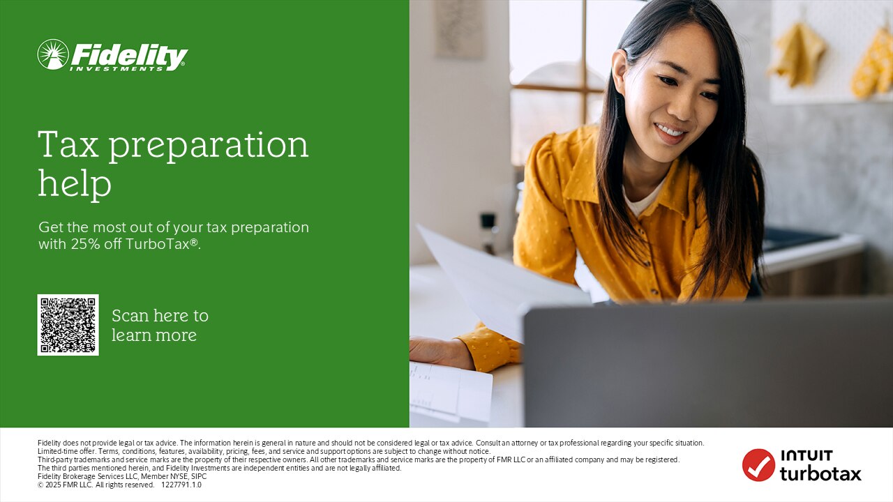 - Discounts on TurboTax of 25% off federal products, courtesy of Fidelity’s negotiated rates